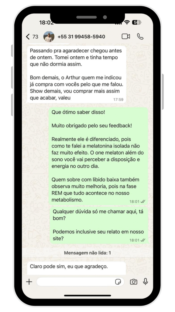 O One Melaton possui garantia incondicional de 90 dias. É testado e validado na Anvisa e em pesquisas. Se não ver resultado, enviamos o código de devolução e reembolsamos 100% do valor – sem burocracia.